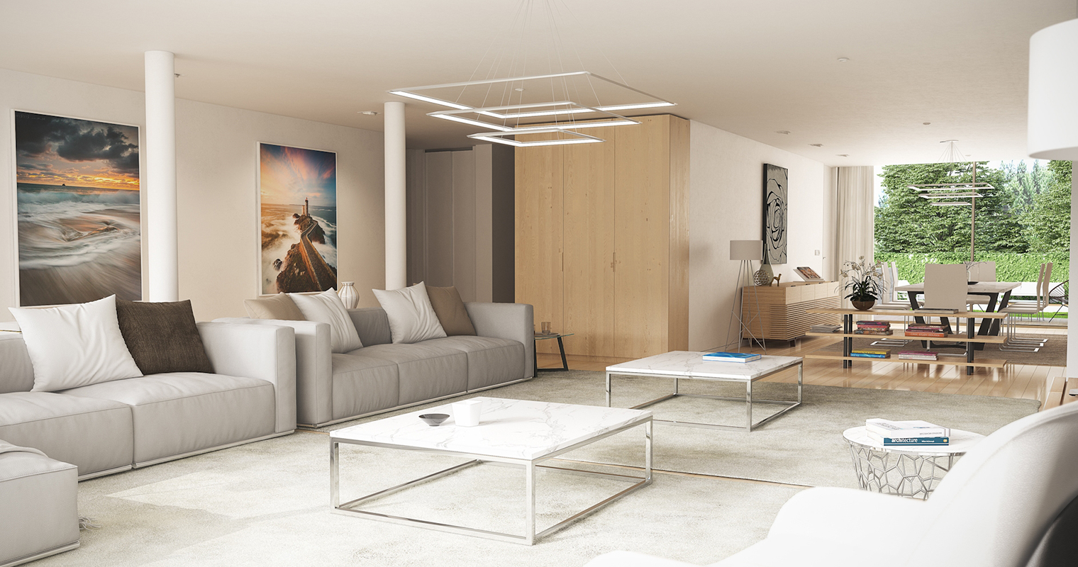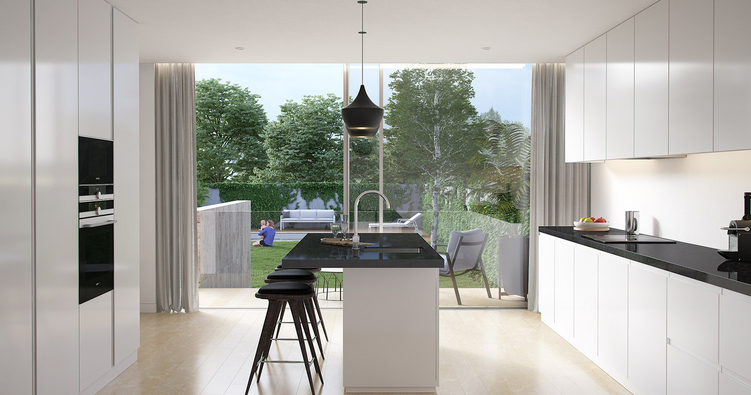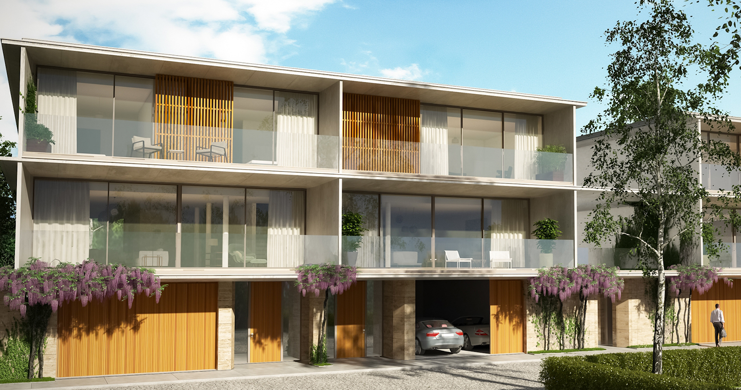 Cada habitação é constituída por quatro suítes, uma sala de jantar, uma sala de estar, uma cozinha e uma lavandaria, um lavabo social e 4 IS privativas, um escritório, uma garagem para 4 carros, um elevador privado, um terraço, um jardim amplo, e piscina exterior.
